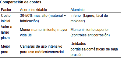Seguro para entornos con alto contenido de oxígeno: no se oxida ni se degrada en configuraciones de 95 %+ de O₂ (a diferencia del aluminio, que forma capas de óxido porosas).